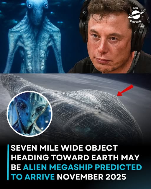 May be an image of text that says 'DEEP UNIVERSE SEVEN MILE WIDE HEADING TOWARD EARTH MAY BE ALIEN MEGASHIP PREDICTED TO ARRIVE NOVEMBER 2025'